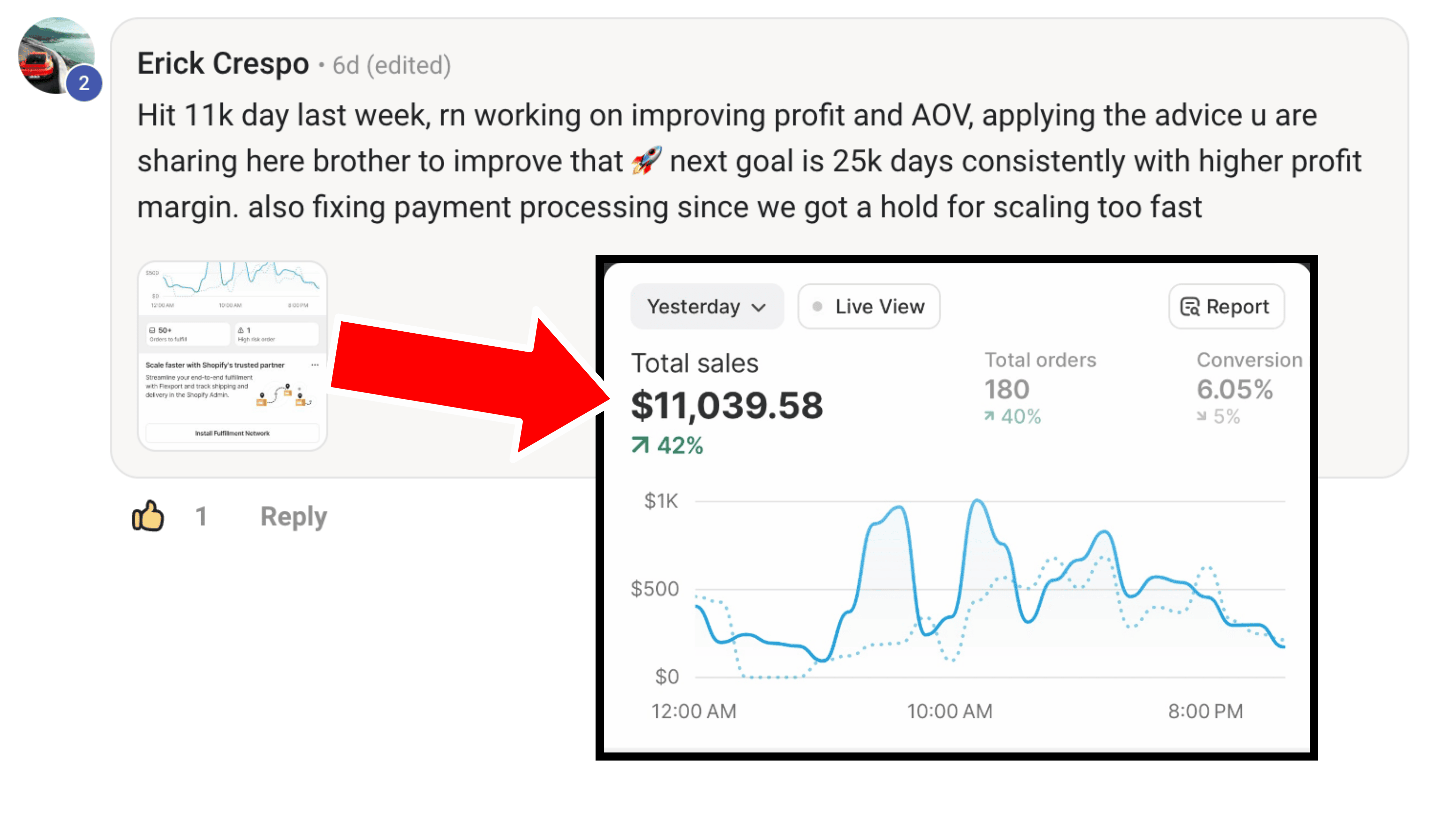 But what really sets this system apart is the private community of 7, 8, and 9-figure ecom business owners all using this strategy, sharing insights and tactics you can apply right away.